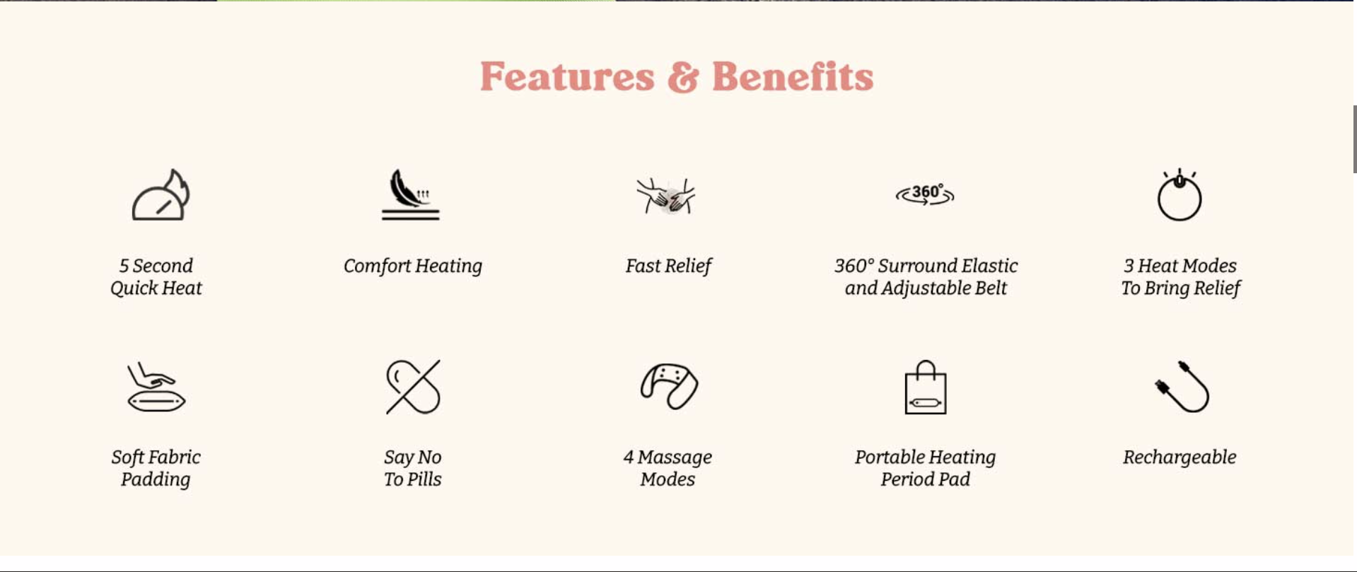 Very helpful during periods. The heat and massage give good comfort and relief.